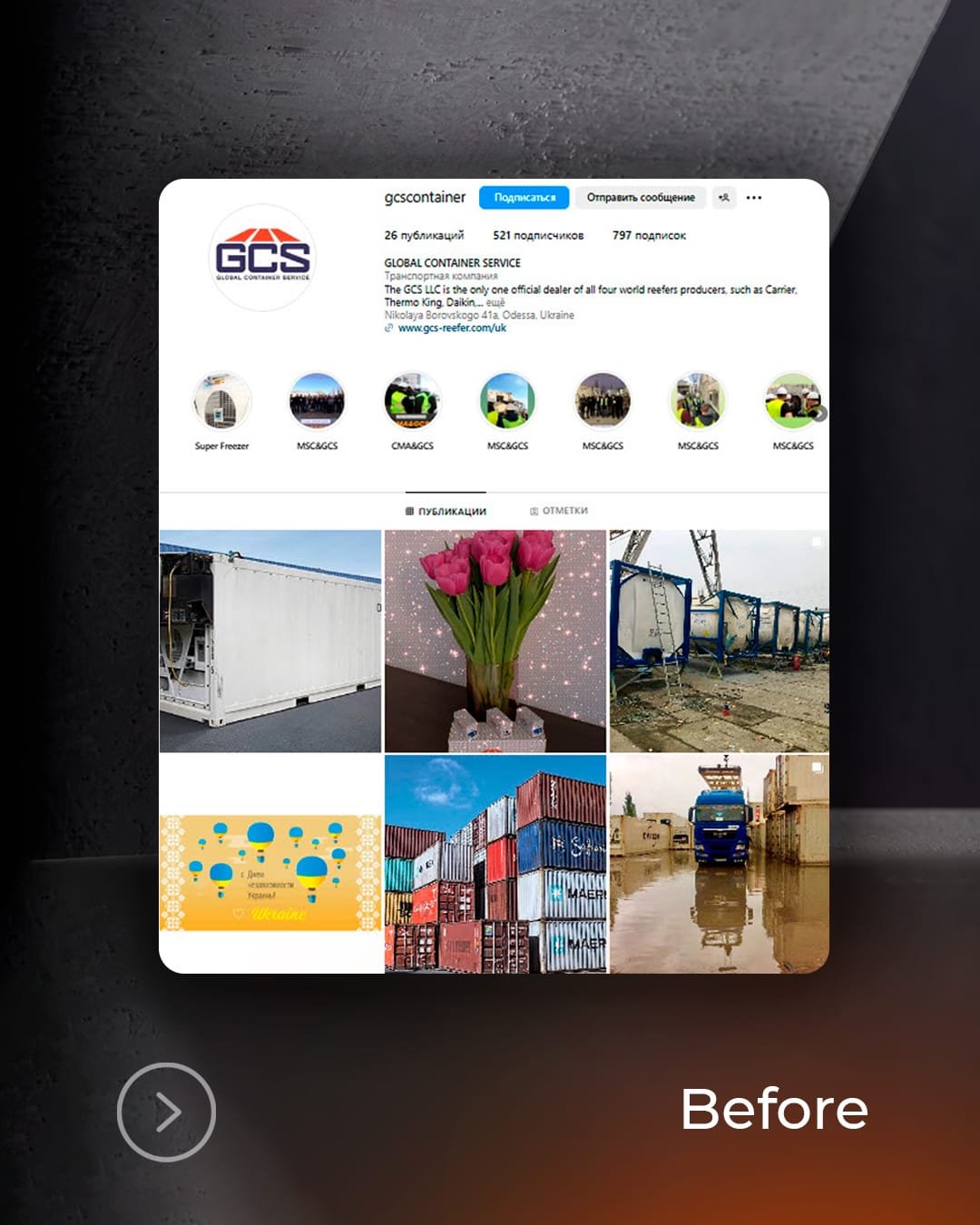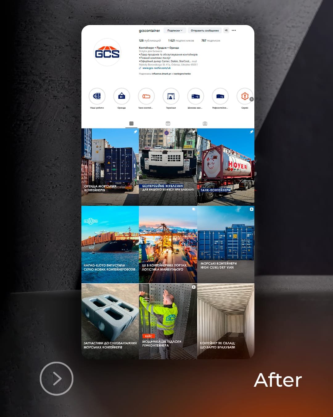 - We updated profile headers and redesigned the Highlights section—now they clearly highlight the company’s activities and services. We created live content: on-site location photos, short videos, and footage of the team at work.